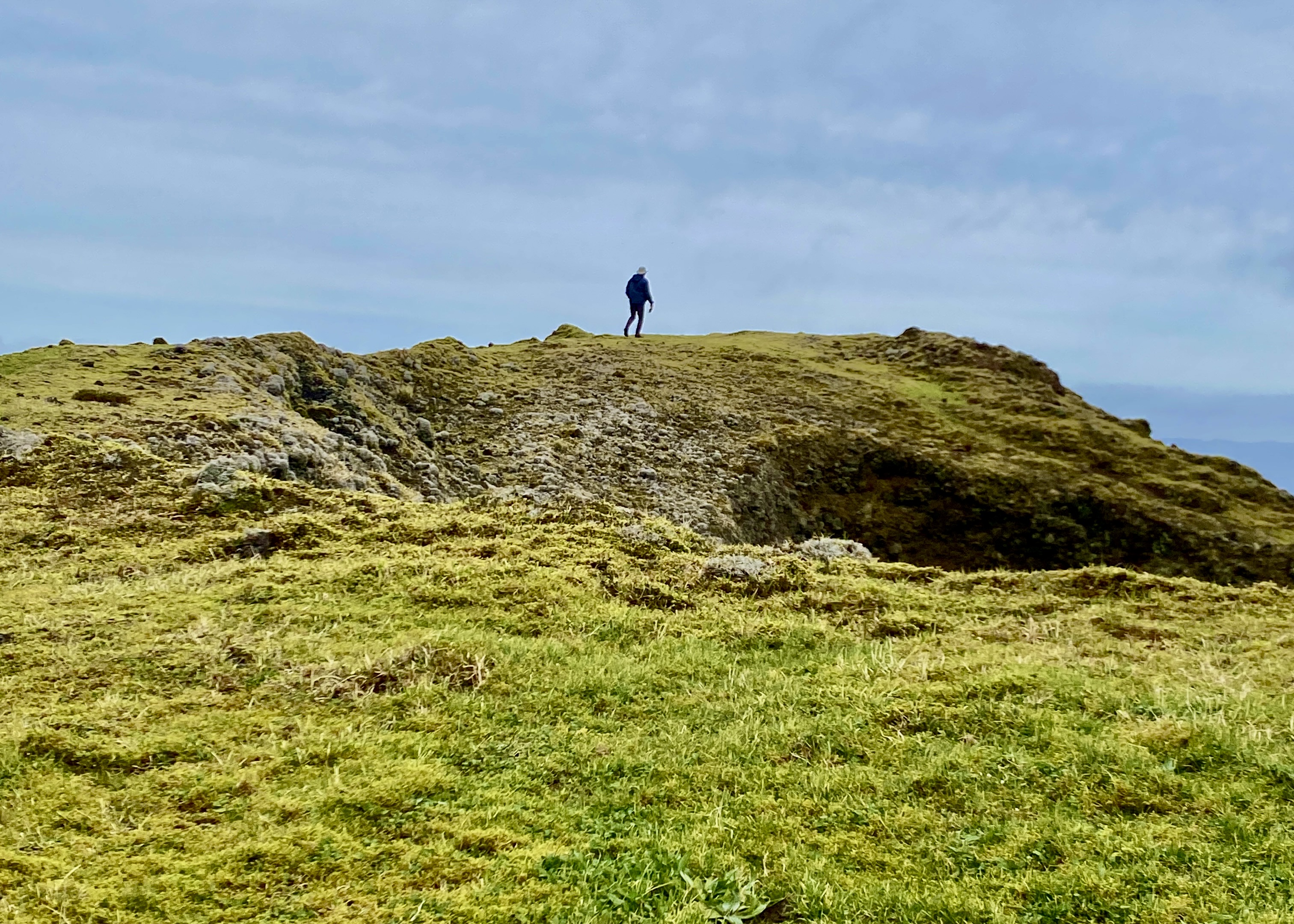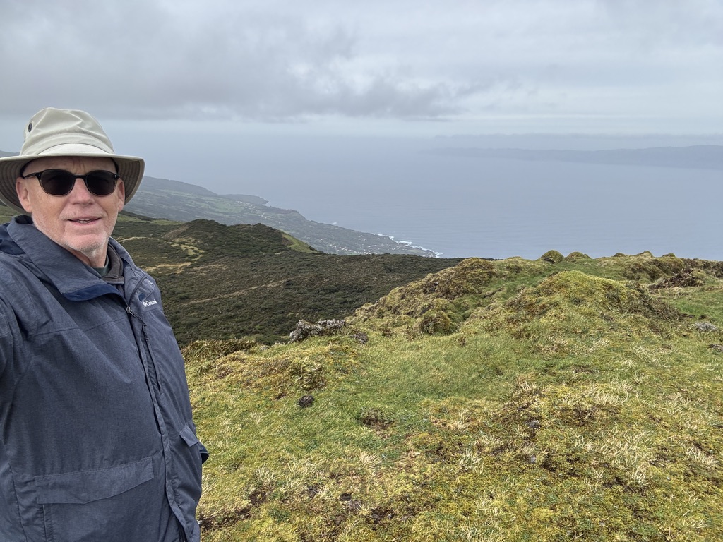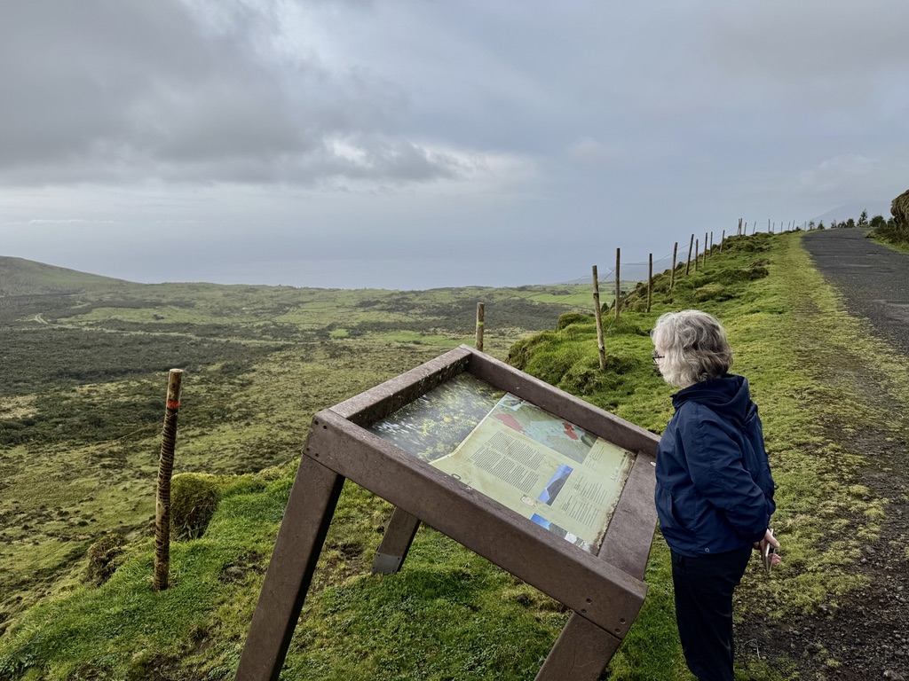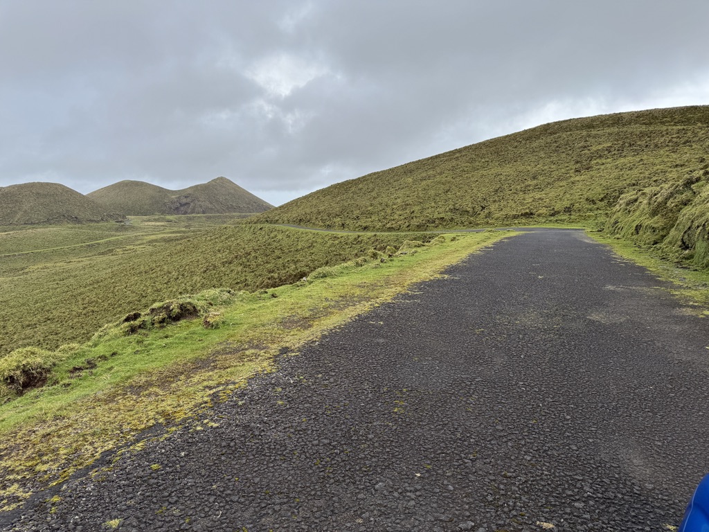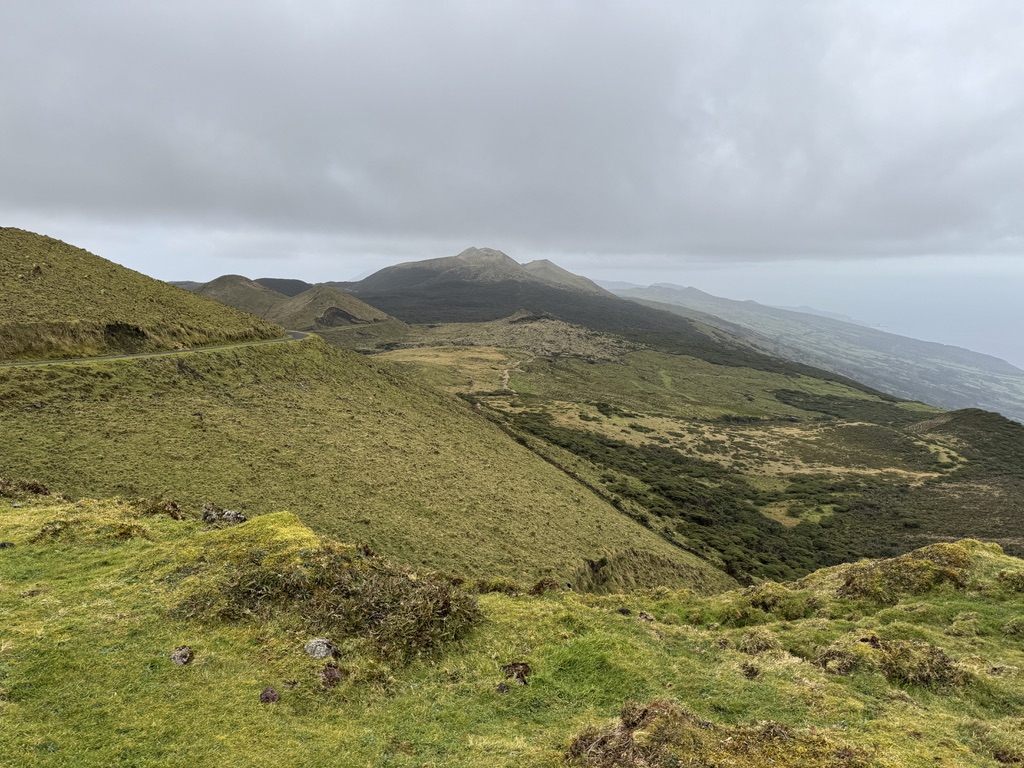 We drove the mountain road to the east end of the island, which we had not yet seen on a clear day. Stunning! This area is a 30 km volcanic ridge, with approximately 200 volcanic cones, covered in peat moss and grasses.