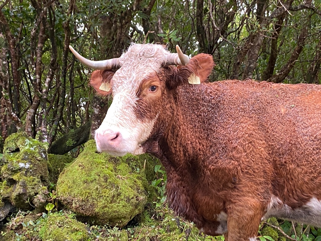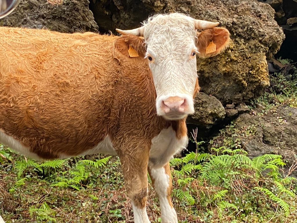 On our way back from the North side to the South side of the island, we took the ‘up-and-over’ road. Rather than staying on the main route, we took a side road and encountered a large herd of cattle that had escaped. They were having the time of their lives, climbing into the vegetation and eating leaves and shrubs. Even though they’re a bit shy, they are also curious and stare at us as we talk to them. Such gentle creatures.