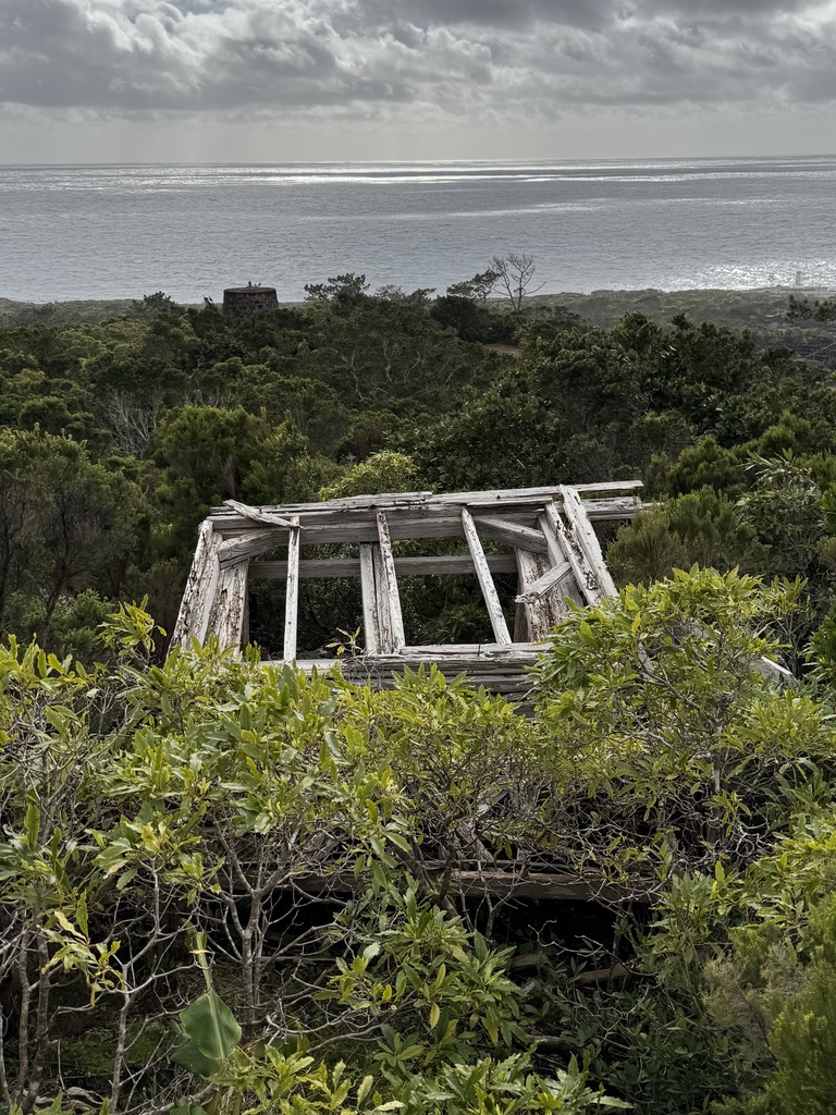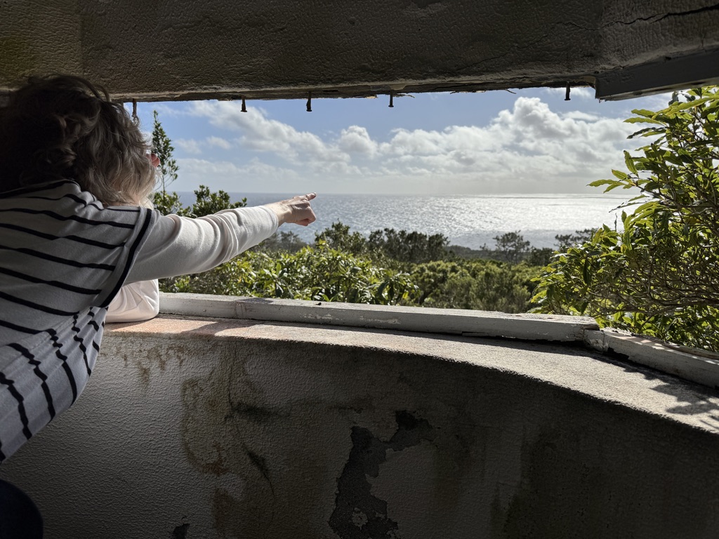 Since last year, when we spent a day hiking with Carlos and Laura, we’d known about an old whale spotting tower in the area of our accommodation. With the sky blue and the sun shining, we set out to find it. From our house, this is a perfect hike. It follows the coast for a bit, then passes by vineyards and farms, and eventually into a wooded area where we found three old whale spotting towers. It seems that they improved each iteration. The middle one was open to explore and it was easy to imagine a whale spotter spending his days alone, searching the water for whales. We learned during our trip to the museum earlier this week that, when a whale was seen, the spotter would shoot a flare into the air. Then, the whalers would race to the boat sheds, launch their boats and work together to find and spear the whale.