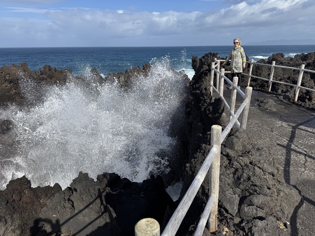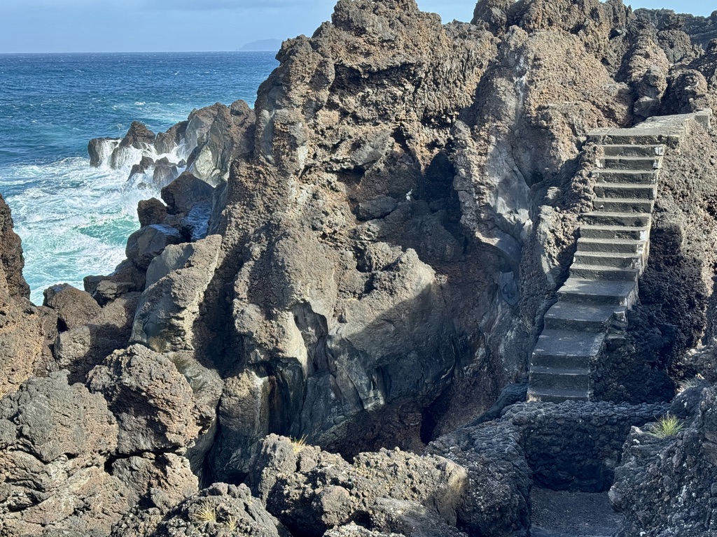 Next, we headed for Cachorro. The shoreline along this village is dramatic, to put it mildly. There are human-made walkways between the towers of lava rock, allowing you to get an overhead view as the waves crash amongst the formations. It’s exciting and unsettling, but an experience not to be missed. Last year when we visited Cachorro, several cats came to visit us. Unfortunately this year we saw exactly zero cats.