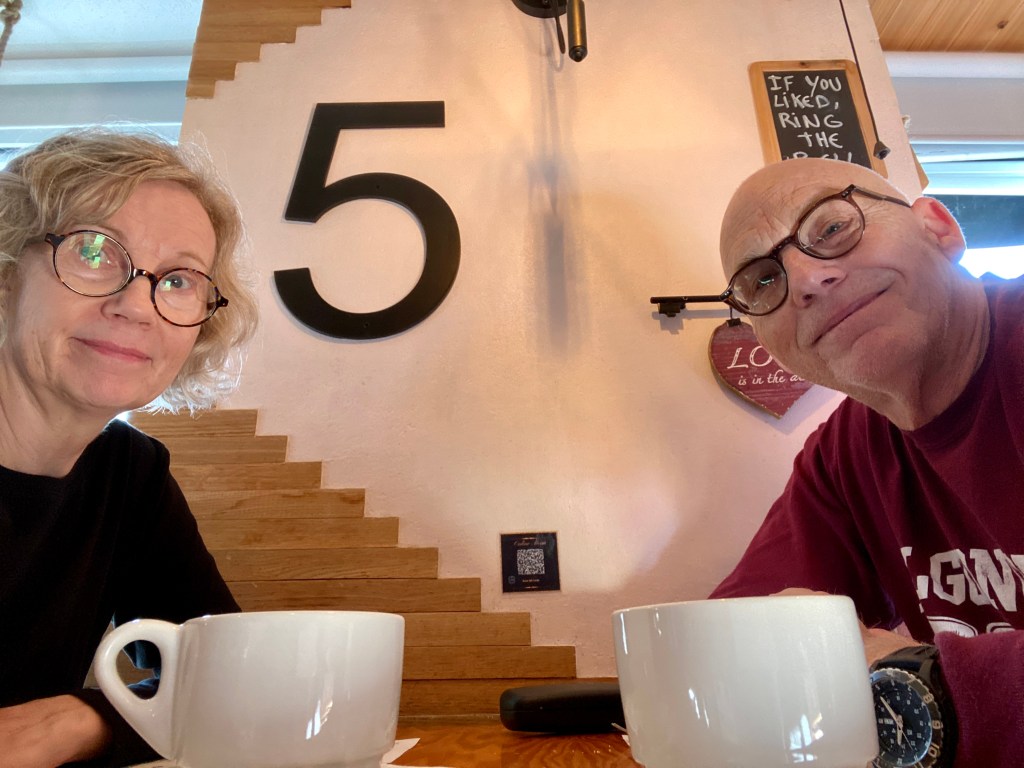 Our goal today was to make another attempt at getting groceries. Sounds easy enough, right? Our biggest stumbling block is trying to find cream for our coffee. We spent a good long time trying to decipher the labels. (Google Translate would not load.) Eventually we asked a local woman, who tried valiantly to help us. She ended up shrugging and saying, “We don’t put cream in our coffee.” This fact had already become evident over the past couple of days when we ordered coffee with cream and sugar. A pleasant side-eye was the usual response, with various results.