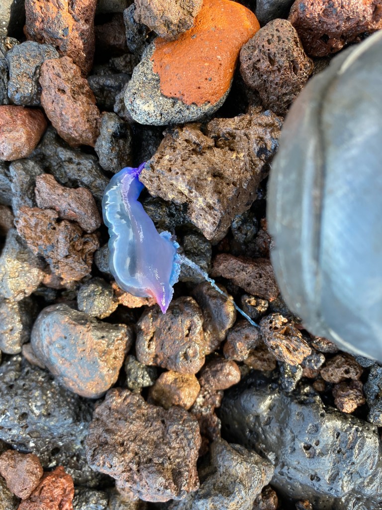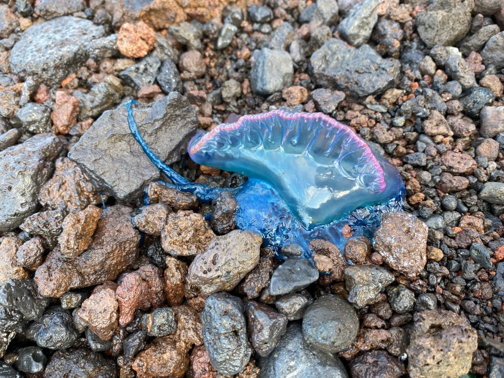 We went for a waterfront walk, collected some more beach glass and came across a couple of small Portuguese Man-of-Wars. These little creatures are beautiful but they pack a punch even when dead on the beach apparently.