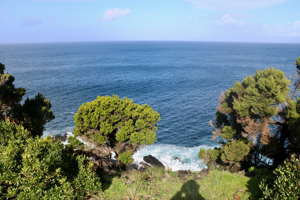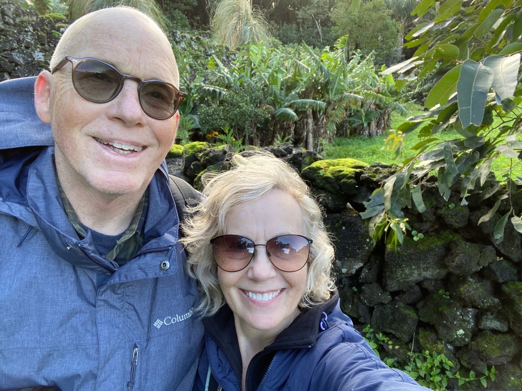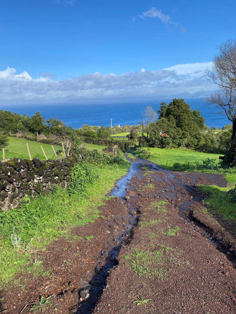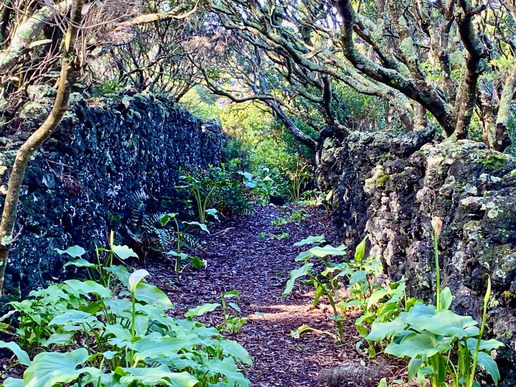 The hike description mentions a path that leads to an old whale lookout tower. When Pico was a whaling island, a man would use binoculars to spot whales passing by and set off a flare to alert the villagers. Boats would be launched, the whale hunted and brought to shore for processing. The blubber was boiled down to make oil lamps, soaps, margarine and machine oil. The products were sold across the world. Whaling was outlawed in 1984, and Pico is now a hot spot for whale watching tours. Anyway, we hiked up to this lookout tower, but there was a notice attached that looked important. Sue used Google Translate on her phone and discovered that the sign is a warning about not staying too long because of high radio frequencies. The structure was quite overgrown and it didn’t appear to have a good view, so we turned around and skedaddled on out of there.